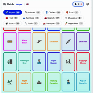 Match icons with their related text descriptions. Multiple categories and beautiful voices including Hindi, Chinese, Spanish, Arabic and more. Play free here.