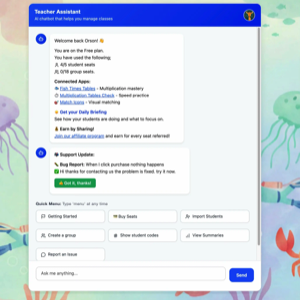 Sign up and get 5 free learning seats. Import student names and generate anonymous signin codes, then sit back and let our AI Assistant make the hard work easy. We'll guide you every step of the way.